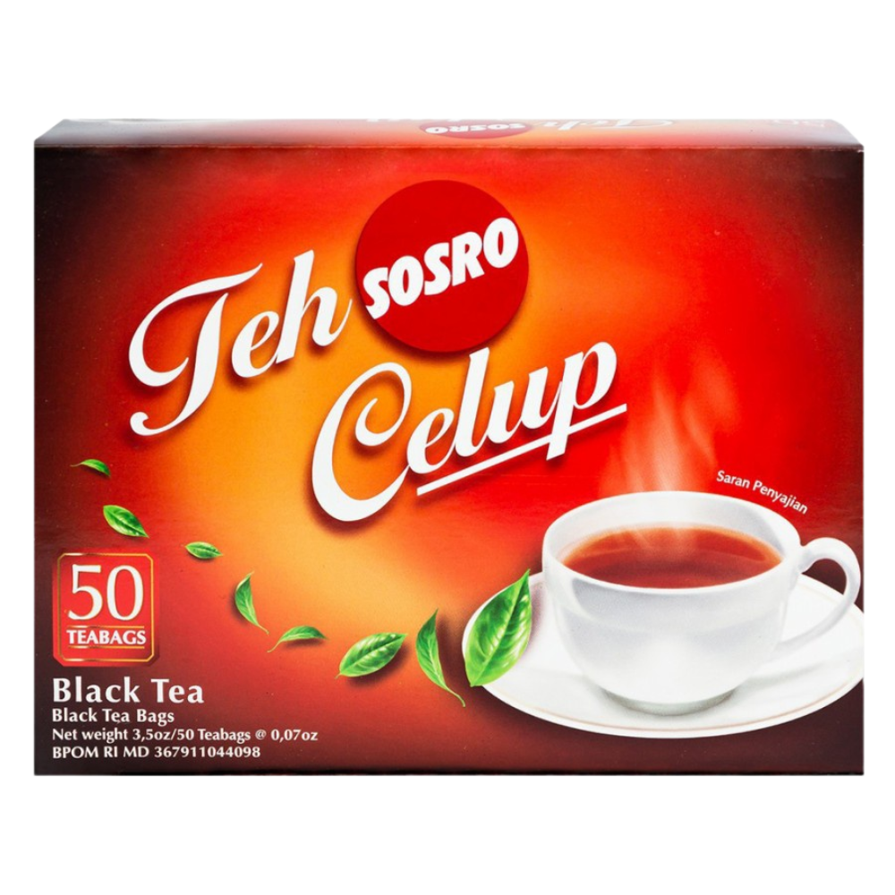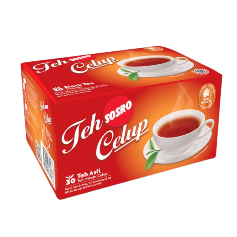 Teh celup Sosro dalam kemasan kotak besar (biasanya 50 sachet)
