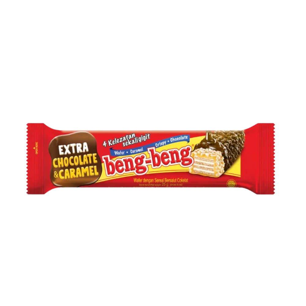Nikmati perpaduan wafer renyah, karamel lembut, rice crispy, dan lapisan cokelat tebal dalam setiap gigitan.