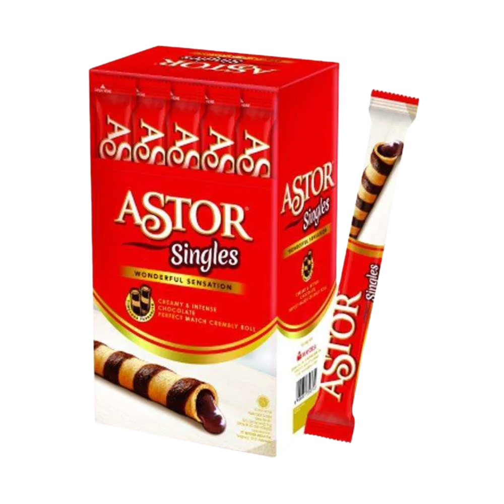 Nikmati sensasi wafer renyah dengan isian cokelat lezat dari Astor,cocok untuk dinikmati sendiri atau bersama keluarga